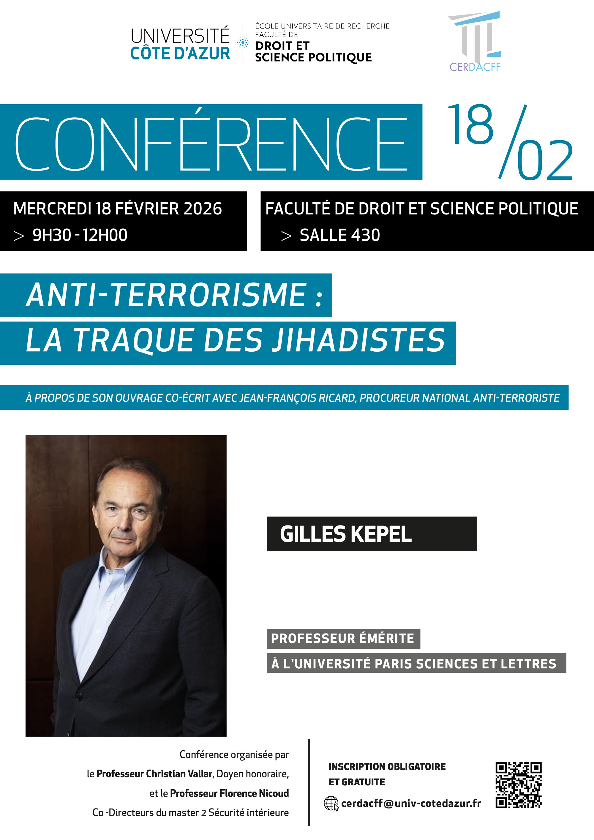 Conférence organisée par le Professeur Christian Vallar, Doyen honoraire, et le Professeur Florence Nidoud, co-directeurs du Master 2 Sécurité intérieure, d'Université Côte d'Azur, du laboratoire CERDACFF