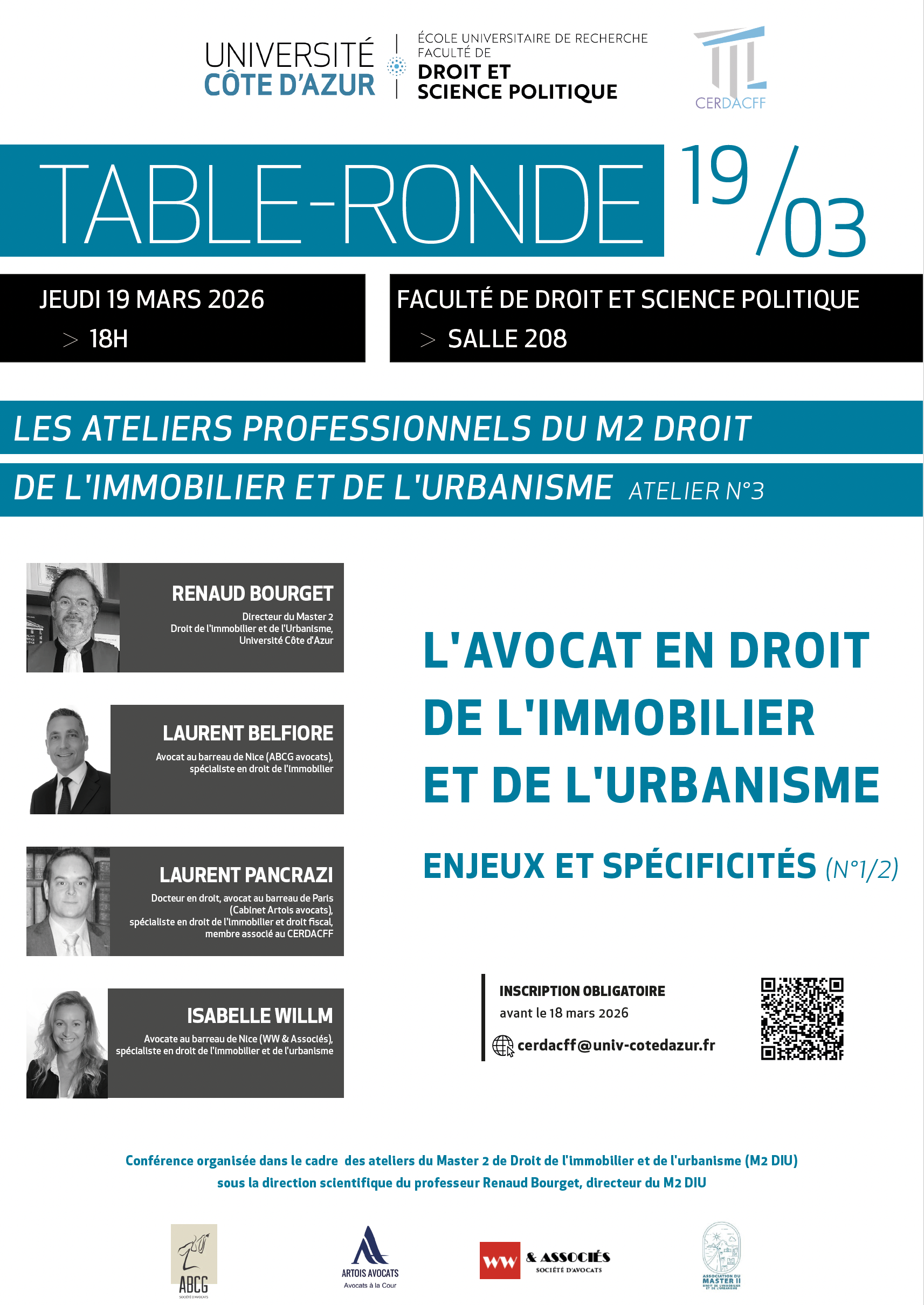 Atelier professionnel du Master 2 Droit de l'immobilier et de l'urbanisme – Université Côte d'Azur