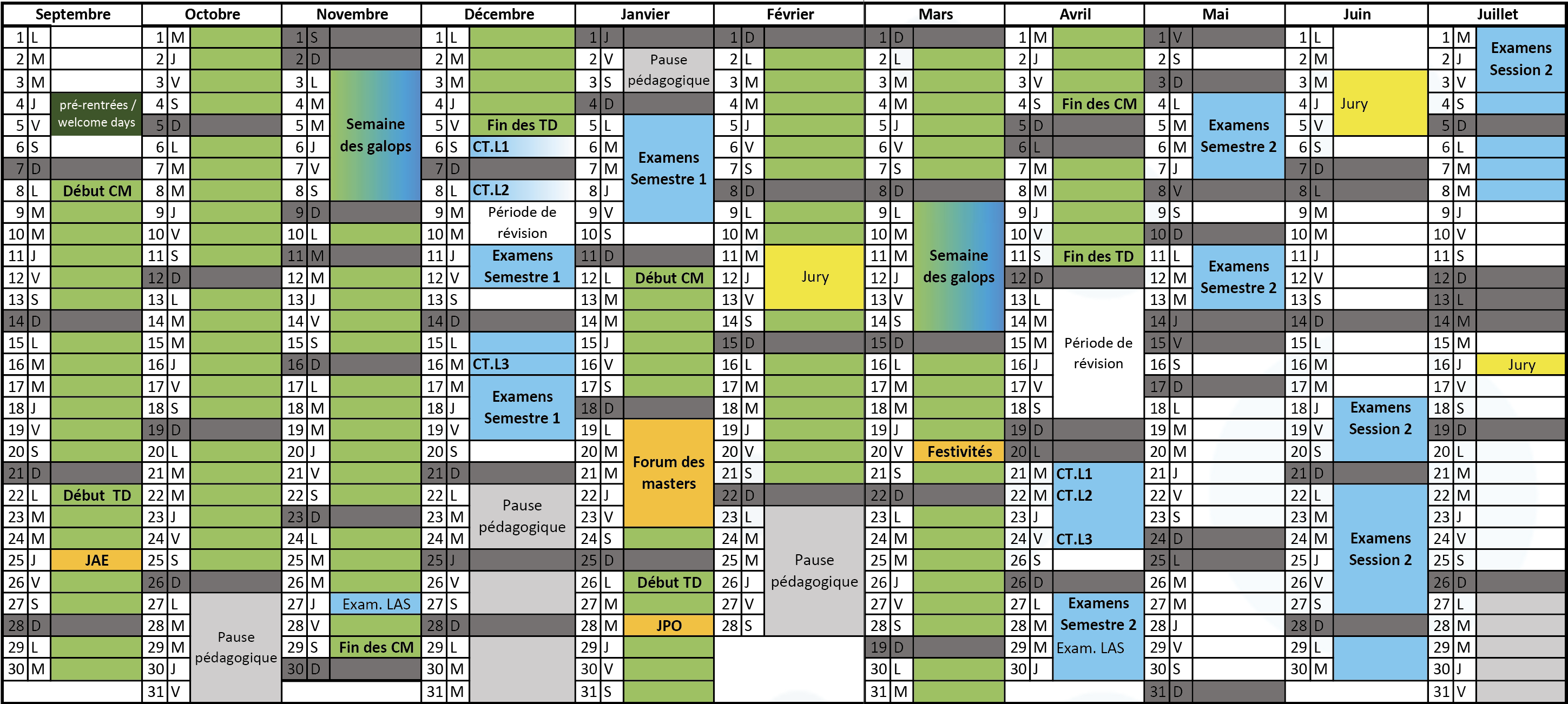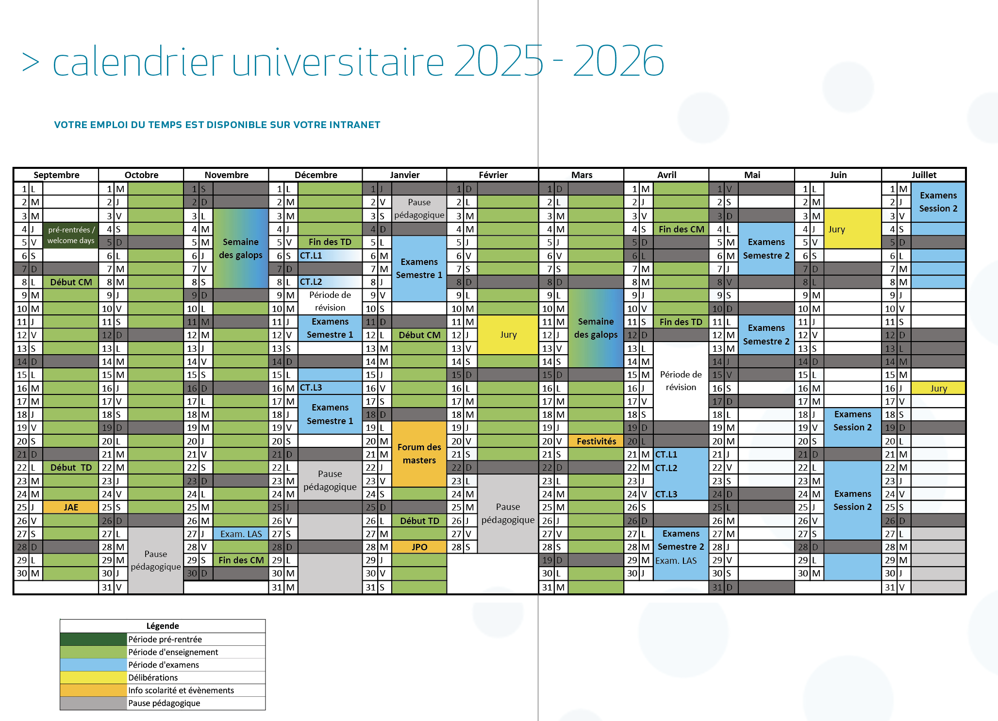 The university calendar sets out the periods of teaching, examination sessions and student breaks.