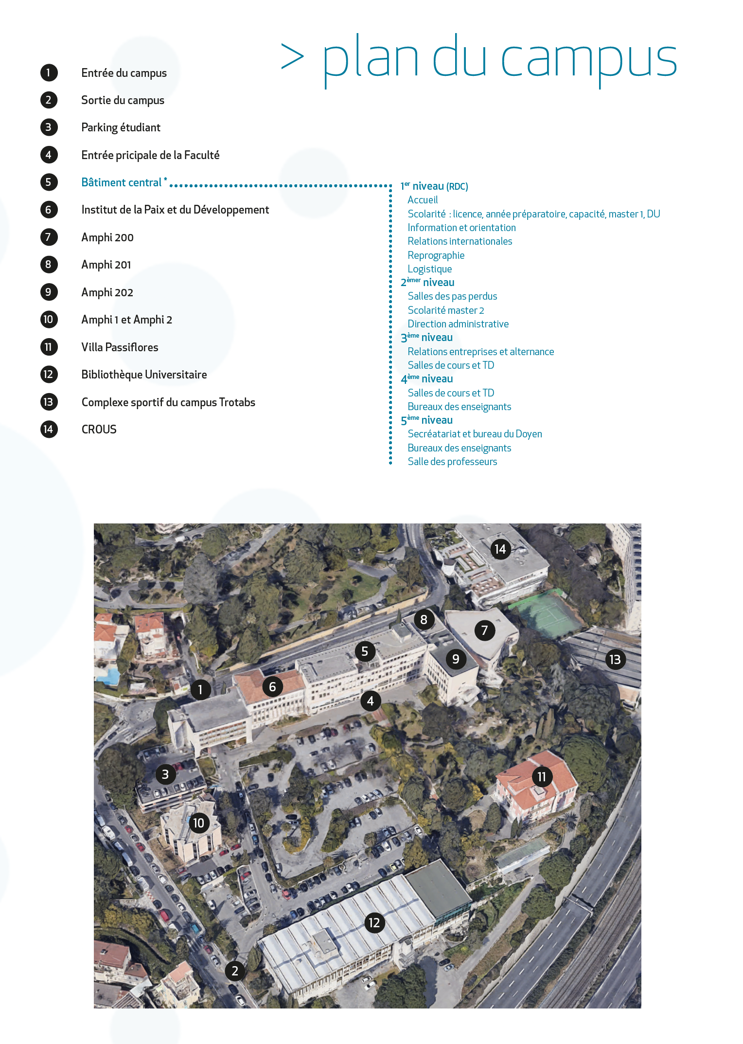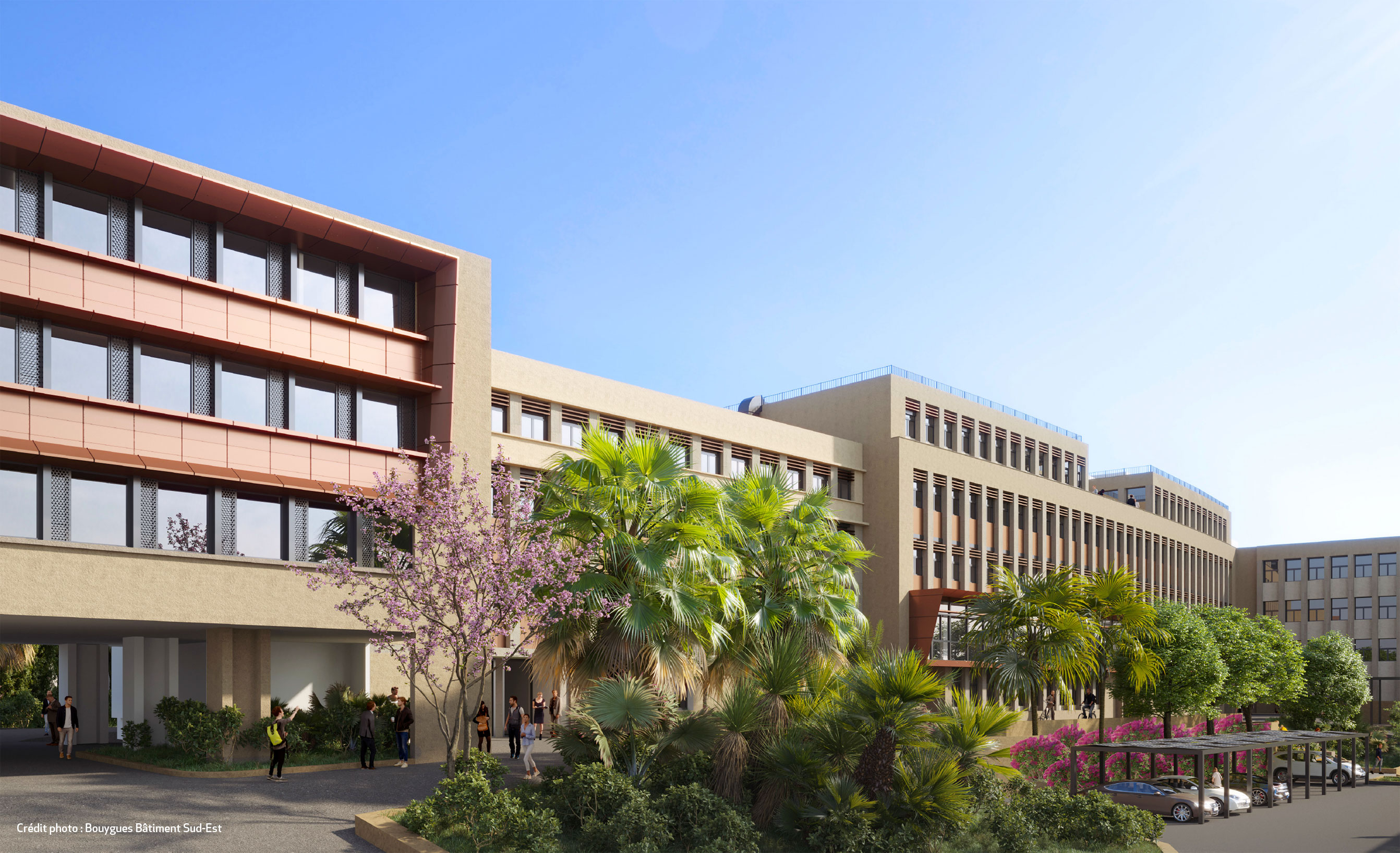 - Planification : différentes phases de réalisation sont programmées successivement sur 3 zones distinctes afin que la Faculté de droit et science politique reste toujours ouverte, avec alternativement des espaces accessibles au public et d’autres pas.